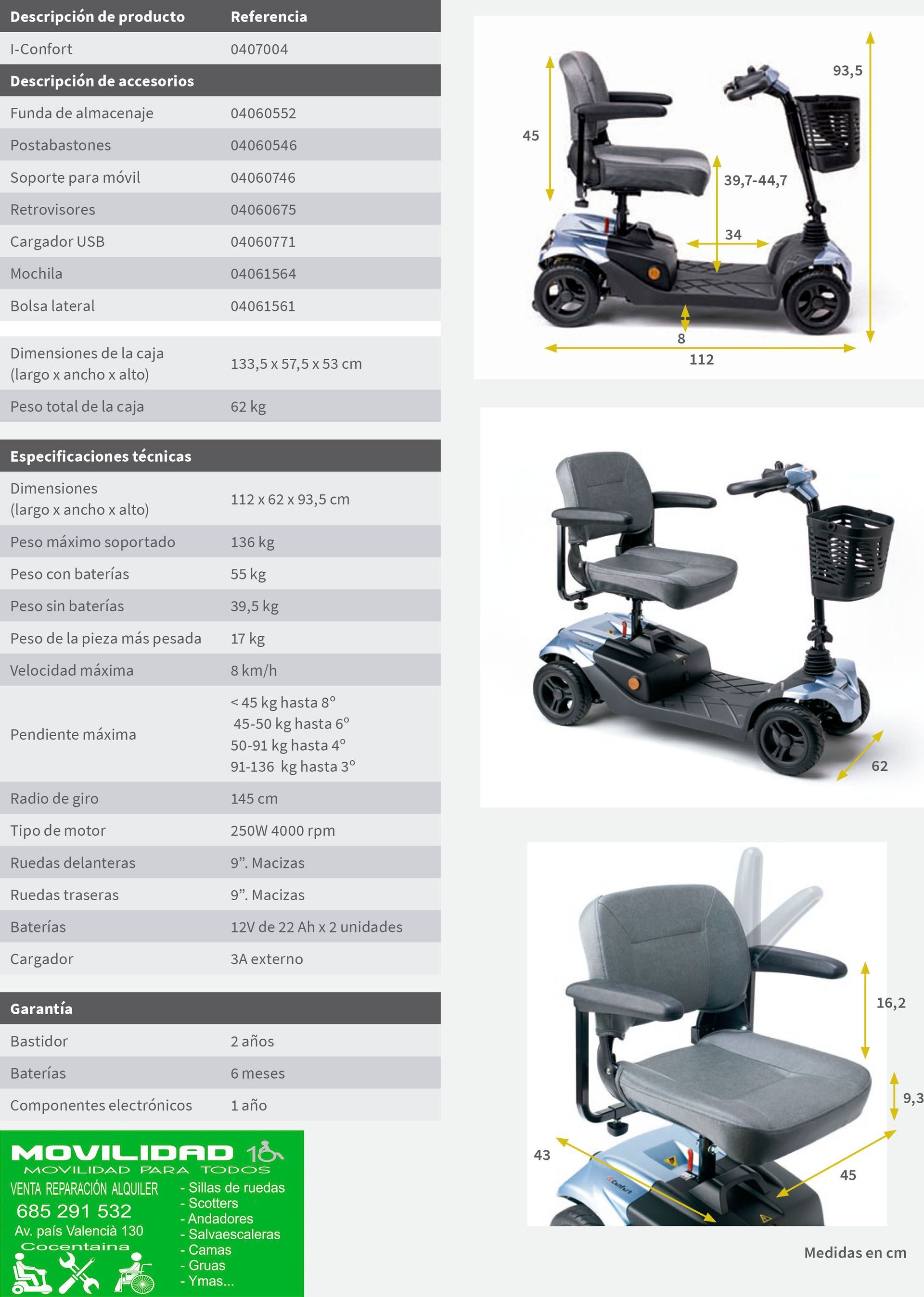 La I-Confort es la Scooter Apex ideal para personas con problemas de espalda gracias a su sistema de amortiguación y sus